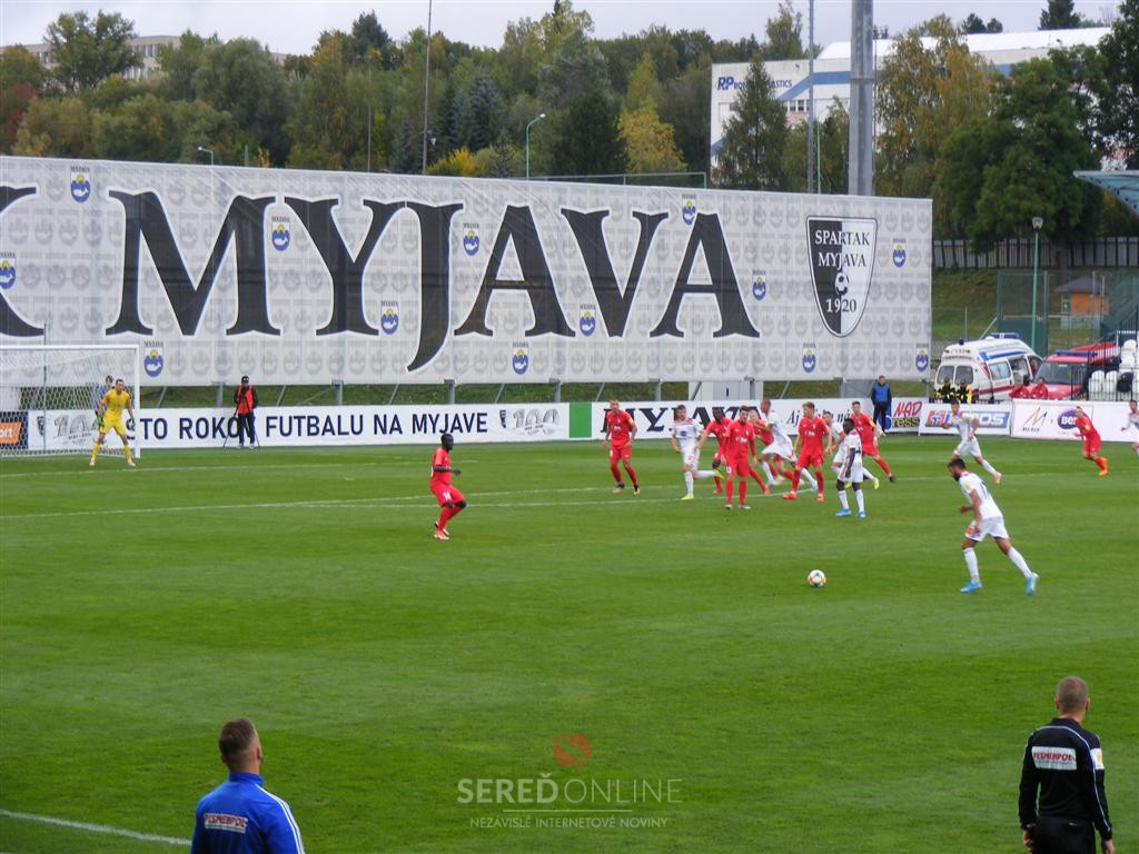 Hralo sa 10.kolo Fortuna ligy ktoré sa dvomi zápasmi dohrá dnes, v nedeľu a po nasledujúcom kole sa naplní prvá polovica zápasov v jej základnej časti. V sobotu si Sereď odohrala na tzv. domácej pôde na Myjave od 16.30 hod. zápas s Trenčínom ktorý sa zatiaľ hýbe v kolísavej výkonnosti a tak fanúšikovia ŠKF mohli očakávať, či sa podarí Seredi bodovať naplno po štyroch za sebou idúcich remízach.