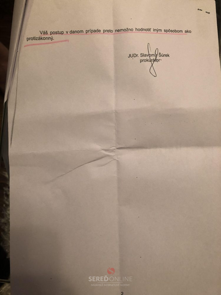 Aby boli aj ďalší občania informovaní, chcel by som im týmto spôsobom, prostredníctvom Sereď Online poskytnúť dôležitú informáciu z Generálnej prokuratúry v Bratislave z roku 2017, kedy prokurátor GP odpovedal starostovi Machovi na jeho pripomienky takým spôsobom, že jednoznačne označil jeho úradný postup ako nezákonný! Citujem z listu prokurátora Generálnej prokuratúry Adriánovi Machovi: „Váš postup v danom prípade nemožno hodnotiť iným spôsobom ako protizákonný.“ ( viď príloha list z Generálnej prokuratúry )