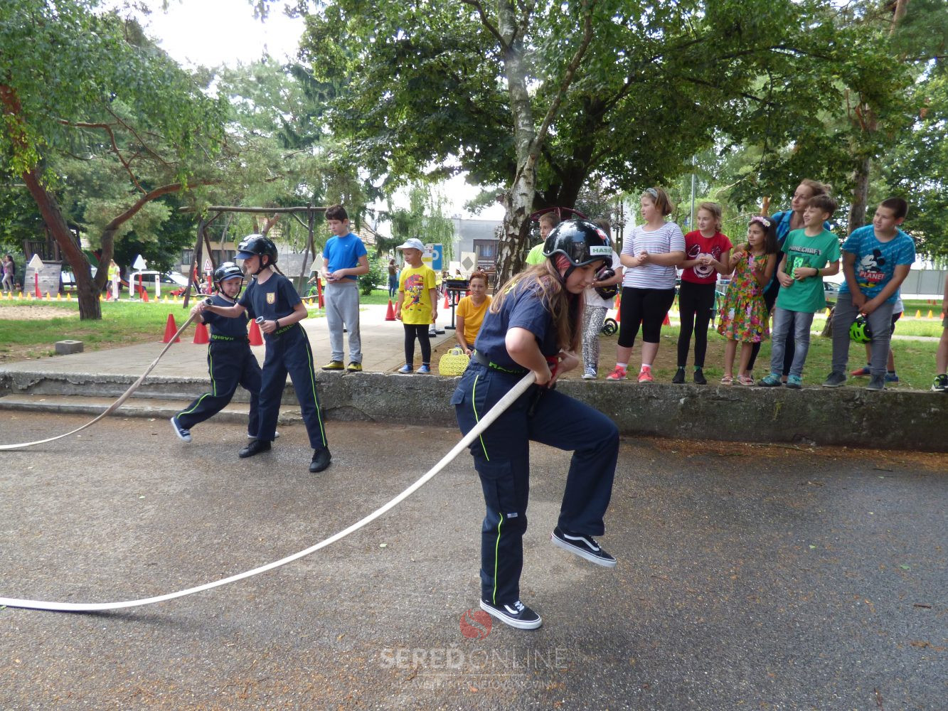 Počas predpoludnia deti z hasičského krúžku v spolupráci s DHZ Šintava vykonali dve ukážky protipožiarneho útoku a školákom predviedli, ako vyzerá a čo dokáže hasičské auto.