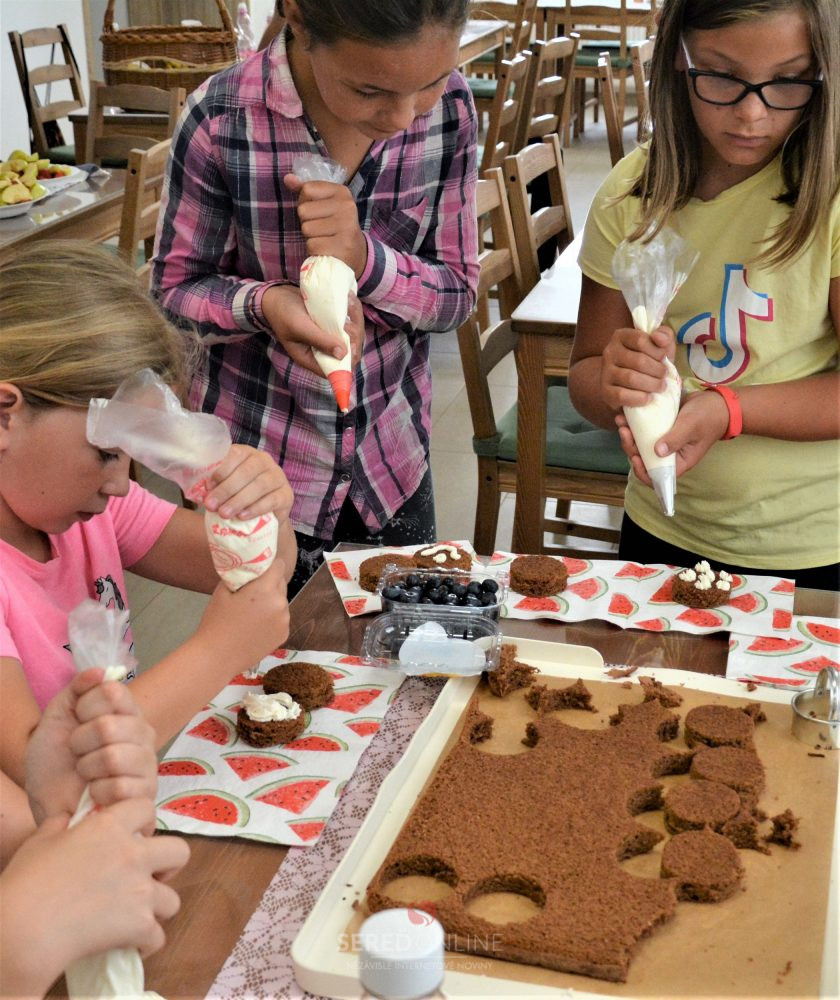 Dnes sa viac ako 30 detí stretlo v základnej škole, kde sa začala „Letná škola ping-pongu“ a „Letná škola varenia a pečenia“. Zatiaľ čo chlapci naháňali celuloidovú loptičku, dievčatá sa pod dohľadom dospelých dobrovoľníčok pustili do pečenia tortičiek a prípravy vajíčkovej a syrovej pomazánky a nealko nápojov. Nakoniec všetko vkusne upravili a ozdobili a na hostinu pozvali aj chlapcov. Všetkým náramne chutilo.