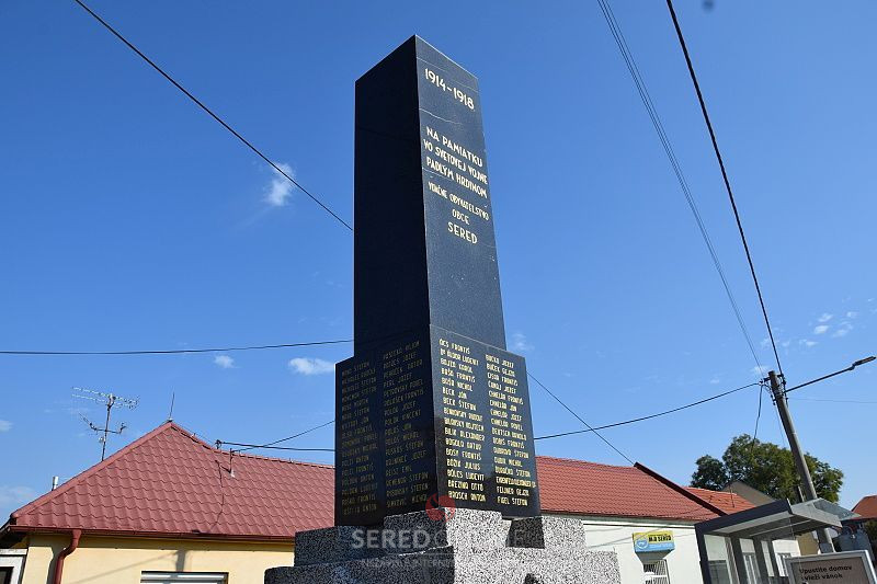 Na pamätníku obetí padlých v prvej svetovej vojne stojí v Seredi pamútník, na ktorom je vyrytých 128 mien obetí vojny a na prednej strane je nápis :