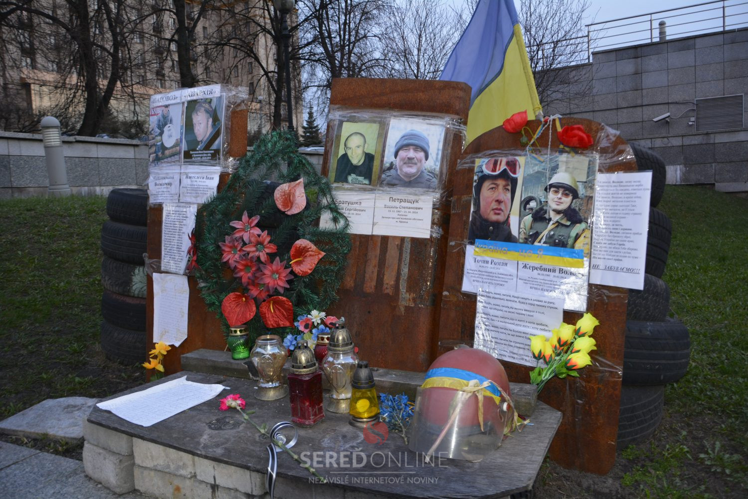 Jedna návšteva v Kyjeve a človeka upúta ulica priamo viditeľná nielen zo samotného Майдан Незалежності, ale aj z hotela Ukrajina s pamätnými tabuľkami a fotografiami ľudí, ktorí na Majdane v zápase o demokraciu položili životy. Zaujmú osobné veci vojakov, ale aj prestrelená helma na pamätníčku jedného z nich.