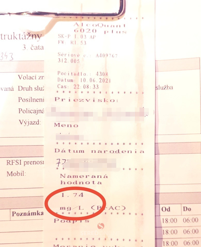 Na opitého šoféra za volantom nás upozornil telefonicky občan, ktorý tmavý Citroen videl na Ulici Rybníkovej v Trnave. Operačný dôstojník vyrozumel ihneď všetky hliadky v meste.  Po pár minútach nahlásili Trnavčania opäť to isté auto ako spôsobilo dopravnú nehodu a v jazde pokračovalo ďalej. Krátko na to policajti PMJ auto spozorovali a  zastavili. Na prekvapenie vyšla spoza volantu žena, ktorá ledva stála na nohách. Policajti ju ihneď podrobili dychovej skúške, pri ktorej jej namerali 1,74 mg/l alkoholu v dychu, čo je 3,68 promile. Hliadka na mieste navyše zistila, že žena jazdila bez vodičského preukazu. Po lustrácii ju zadržali a eskortovali do cely policajného zaistenia, kde si počká v tzv. super rýchlom konaní na rozhodnutie o vine a treste.