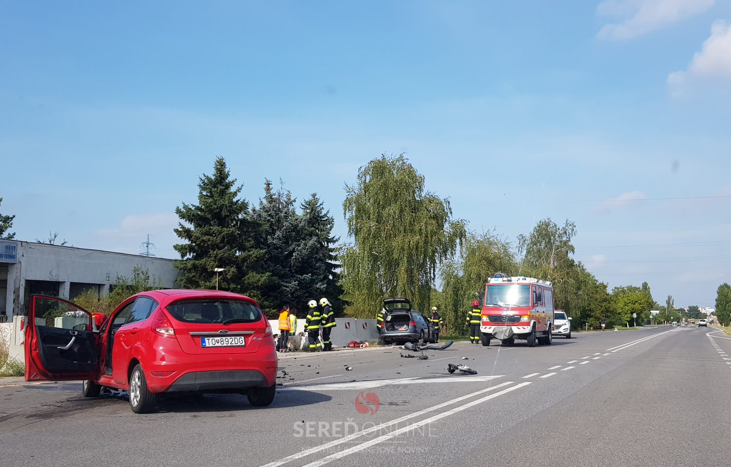 Sereď / Práve v týchto chvíľach zasahujú hasiči HaZZ zo Seredi pri dopravnej nehode, ku ktorej došlo na Bratislavskej ulici v Seredi a to konkrétne pri výjazde z bývalého Milexu.