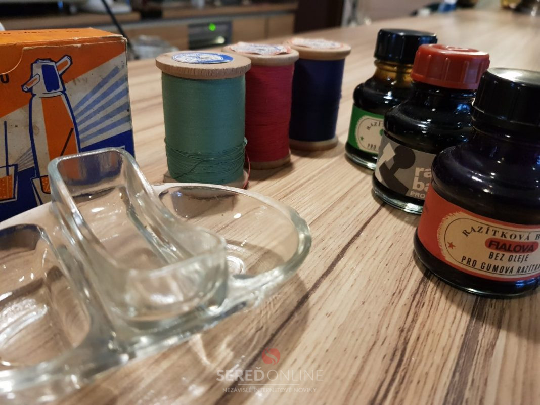 Starý pán z opačného kúta republiky pedantne zabalil a pred rozbitím ochránil tri originálne zabalené fľaštičky s razítkovou farbou, klasickú stolovú soľničku, originálnu krabičku s originálnymi bombičkami do sódovej fľaše a tri kotúľky s niťami do šijacieho stroja. Práve tieto kotúľky mi pripomenuli detstvo, kedy asi pred 45 rokmi som u babky v Dolnej Strede obdobné drevené kotúľky videl nastrčené na starej Singerke. Odvtedy som tieto nite nevidel…