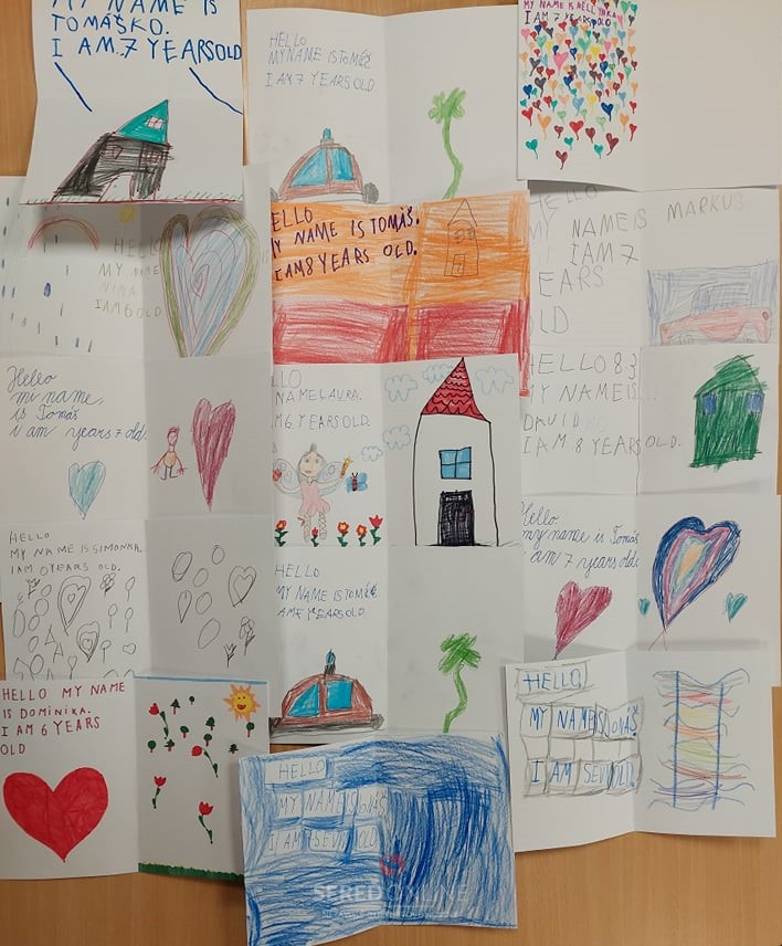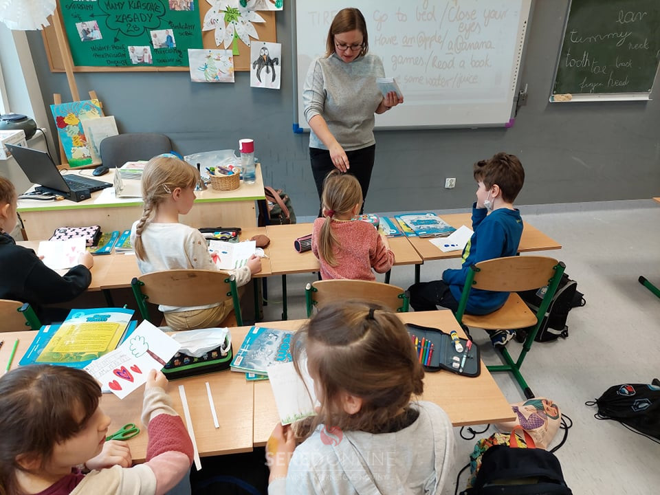 Poľských žiakov sme potešili milými pohľadnicami, ktoré sme im priniesli zo Slovenska od našich študentov. Tí sa im v krátkosti v anglickom jazyku predstavili a pripojili aj pár viet o našom meste a krajine. Naši najmladší, prváčikovia, vďaka svojim pozdravom, vyčarili úsmev na tvárach poľským druháčikom.