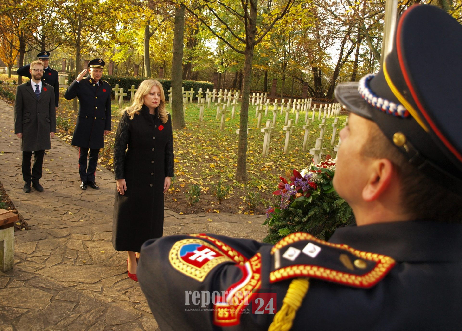 Miroslav Košírer / Bratislava / Prezidentka SR Zuzana Čaputová prišla položiť veniec k Centrálnemu krížu na Vojenskom cintoríne na Kopčianskej ulici v Petržalke.