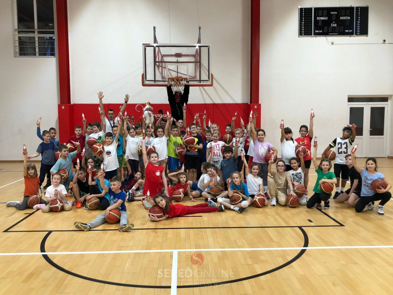 Na začiatok si všetky deti užívali iba prítomnosť trénerov, ktorí si pre nich pripravili cvičenia s Vianočnou tematikou. Ako deti sedeli v stredovom kruhu našej športovej haly a počúvali pokyny trénerov, do dverí vkročil čert. Deti sa razom rozutekali po ihrisku, ale po chvíli pochopili, že čert si tiež chcel iba zatrénovať. Našim najmenším basketbalistom rozcvičil ruky rôznymi driblingovými cvičeniami a zabával ich svojou šikovnosťou. Zároveň ich nabádal k tomu, aby po ňom opakovali rôzne cvičenia a zlepšili si tak svoje driblingové zručnosti. Čert mal veľkú trpezlivosť aj na otázky zvedavých detí.