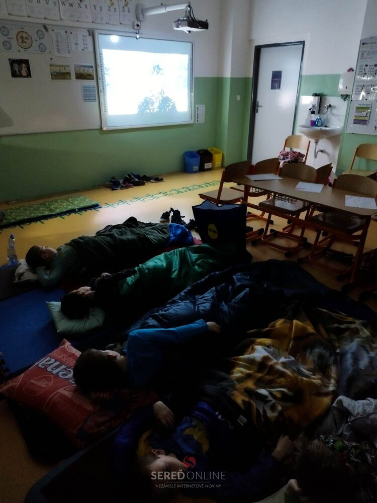 V piatok večer sa deti rozlúčili s rodičmi, v triedach si pripravili spanie, odtlačkom prsta spečatili prísahu, každý dostal preukaz a rozprávková noc sa mohla začať. V knižnici pani učiteľky čítali rozprávky Škaredé káčatko a Ferdo Mravec. Kto dobre počúval, si ľahko poradil s kvízovými otázkami a vylúštil krížovku o rozprávkach. V triedach sa tiež tvorilo. Žiaci v skupinách vytvárali projekty, skladali puzzle, pomocou morzeovky lúštili názvy rozprávok a na interaktívnej tabuli hrali pexeso. V telocvični si deti zmerali sily v netradičných disciplínach. Zbierali Lienkine stužky zavesené na rebrinách, preskakovali priekopu, stratené káčatká vrátili do domčeka, upratali Ferdov neporiadok, prenášali Lienku cez potok a skladali rozsypané písmenká. Na záver sa konal nočný pochod školou. Deti hľadali indície k rozprávkam, ktoré im pani učiteľky poschovávali. Veruže boli šikovné, všetko našli aj uhádli. Nebáli sa ani tmavých kútov v škole. Nakoniec našli aj ukrytý poklad. Starší žiaci absolvovali nočný pochod vonku v areáli školy. Po nočnom pochode už len večerná hygiena a šup do spacákov. Aby toto všetko mohli deti zvládnuť, museli sa dobre posilniť. Naše pani kuchárky im upiekli fantastickú pizzu, za čo im patrí veľká vďaka.