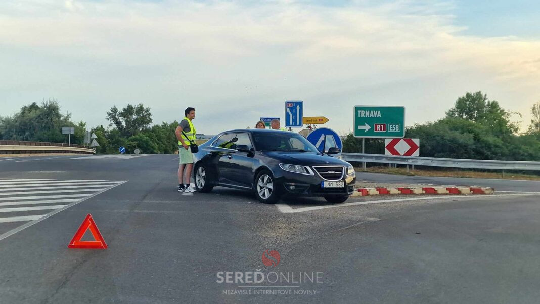 Dolná Streda/ Na nadjazde ponad rýchlostnú komunikáciu R1 v smere od Galanty do Dolnej Stredy v protismere je odstavené osobné motorové vozidlo čiernej farby. Z časti blokuje komunikáciu v smere z Dolnej Stredy na Galantu.